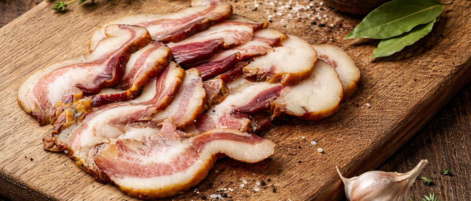 Lishman’s Smoked Guanciale is made from mature outdoor bred Yorkshire pork jowl and cured for 4 months to develop its rich, savoury character. Sliced in handy 150g packs, it has a deep pork flavour with a gentle smokiness and plenty of natural fat that turns beautifully silky when cooked.
