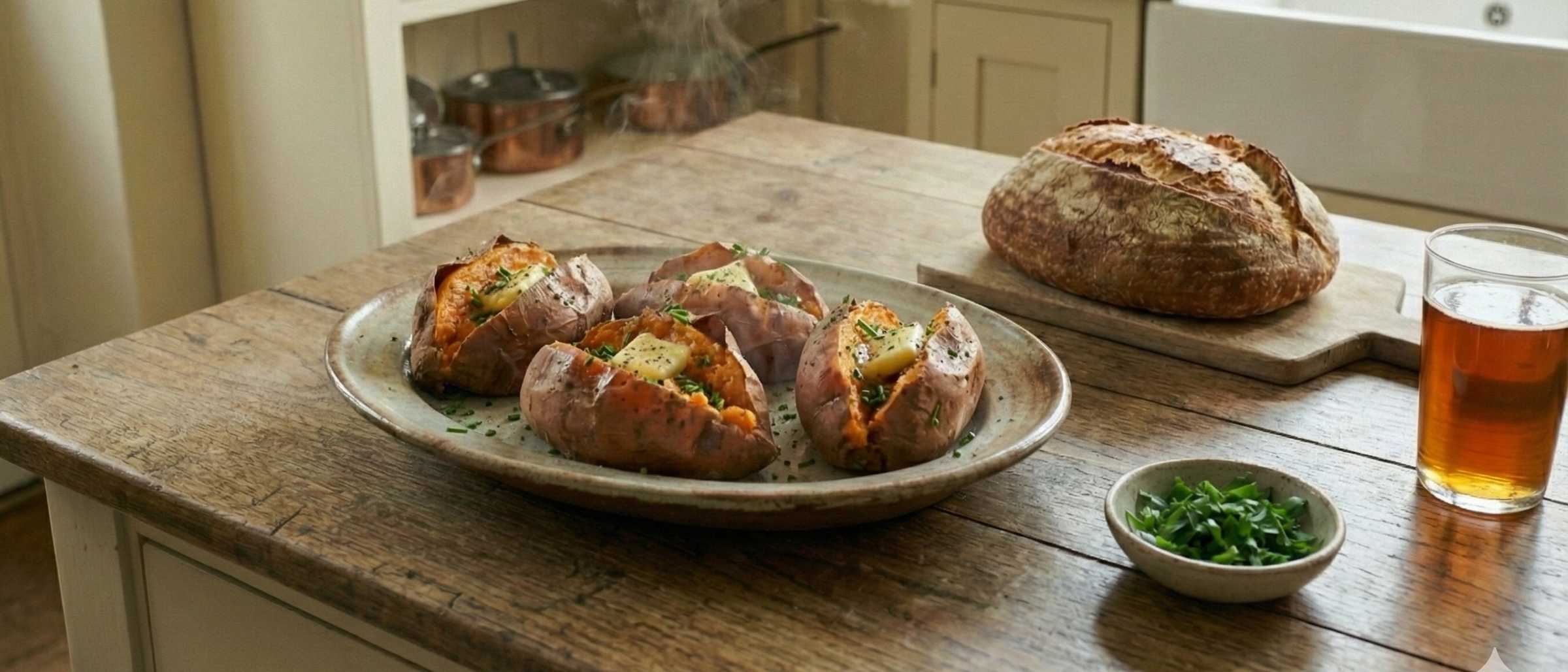 Simple, comforting and endlessly adaptable, baked sweet potatoes are one of the easiest ways to add slow-burning energy to winter meals. Baking them whole keeps the flesh soft and sweet inside while the skins turn gently caramelised. They work just as well on their own as they do split open and topped with broths, pulled meats or vegetables.