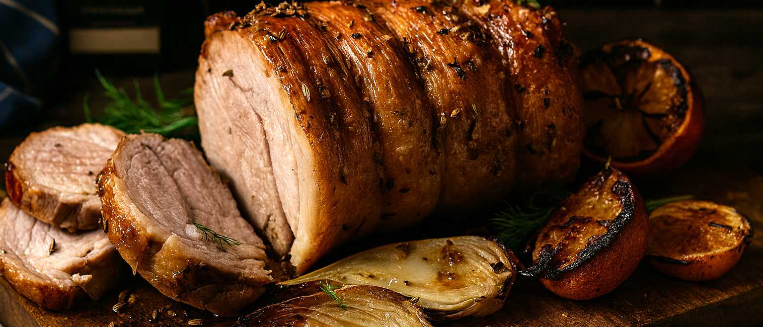 Slow-roasted pork shoulder with its rich fat and flavourful meat is perfectly balanced by the brightness of lemon and the gentle anise notes of fennel. As the joint roasts, the citrus and vegetables caramelise in the pan, creating a naturally fragrant and savoury jus that complements the tender pork.