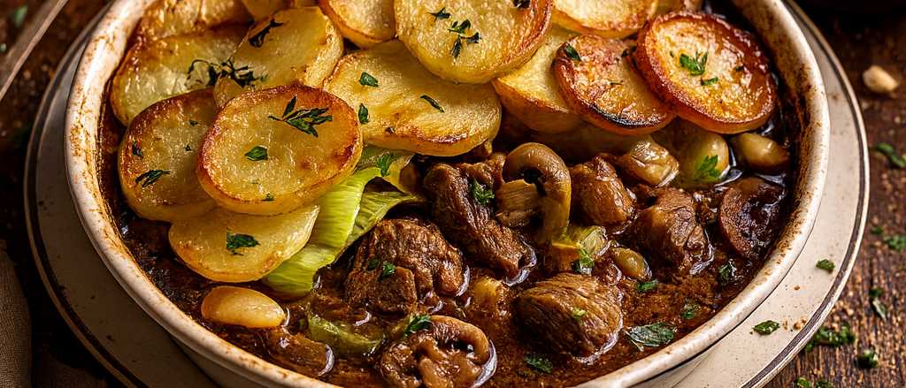 A true comfort dish from the North of England, lamb hot pot is all about slow-cooked flavour and hearty satisfaction. Tender pieces of lamb shoulder are simmered with onions, carrots, mushrooms, and stock before being topped with layers of thinly sliced potatoes that turn golden and crisp in the oven. It’s simple, wholesome, and perfect for a cold evening around the table.