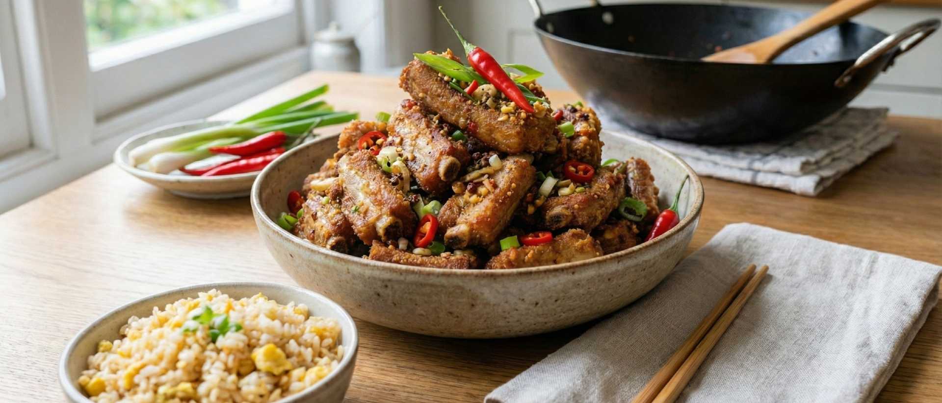 Salt and pepper ribs are a Chinese takeaway classic—crispy, aromatic, and packed with fiery flavour. These ribs are first roasted or air-fried until golden, then tossed with chilli, garlic, spring onions, and a fragrant salt and spice mix. Perfect as a sharing dish or indulgent starter.