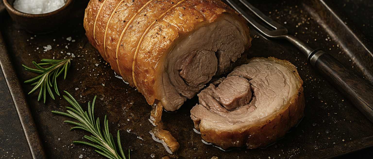 A beautifully rolled lamb loin, roasted until the skin is crisp and golden, makes a stunning centrepiece for a Sunday roast or special family meal. The cut is naturally tender and flavourful, and rolling it ensures even cooking with a delicious balance of fat, lean meat, and crisp outer skin.