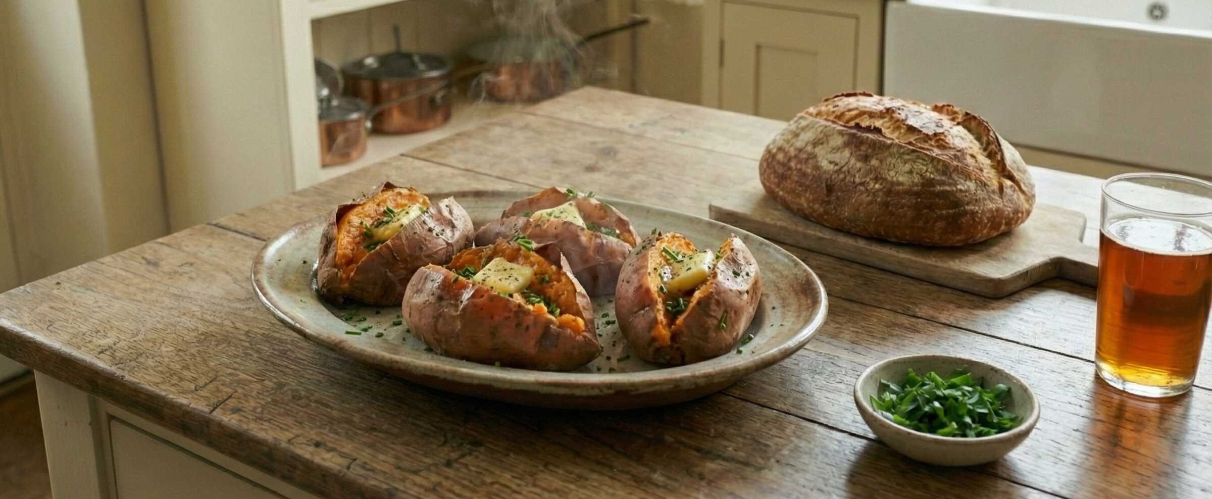 Simple, comforting and endlessly adaptable, baked sweet potatoes are one of the easiest ways to add slow-burning energy to winter meals. Baking them whole keeps the flesh soft and sweet inside while the skins turn gently caramelised. They work just as well on their own as they do split open and topped with broths, pulled meats or vegetables.