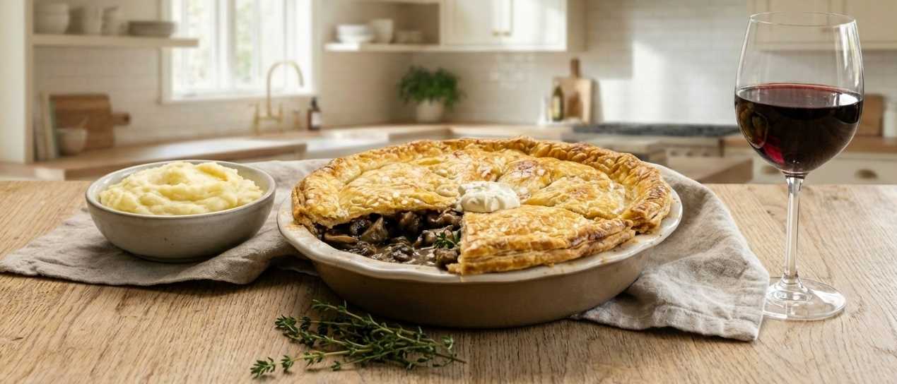 This pie is designed specifically for leftover roast beef silverside, treating it gently rather than cooking it twice. The beef is folded into a rich mushroom gravy and lifted with horseradish, giving a comforting, well-balanced dish that feels intentional rather than improvised.