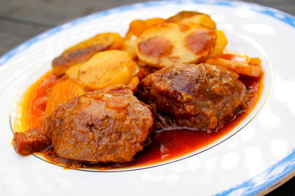 One of our favourite dishes is braised pork cheek. Here we’ve added some of our cooking chorizo and topped it with some slices of potato.