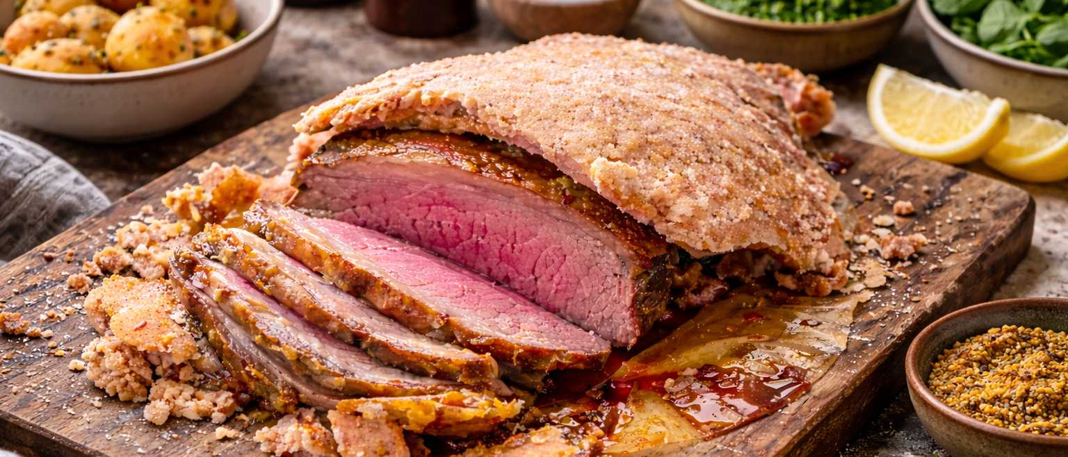 Salt-baked whole picanha is one of those dishes that feels both theatrical and wonderfully simple. The salt crust protects the beef as it roasts, the fat cap bastes the meat from above, and the finished result is deeply savoury, juicy and full of proper beef flavour.