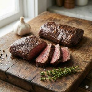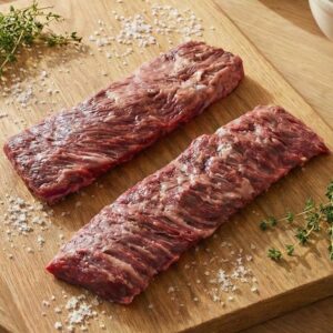Our collection includes a variety of cuts such as featherblade, bavette, flat iron, and onglet. These steaks are not only full of flavour but also versatile, perfect for those who appreciate the finer aspects of traditional meat. Each piece is dry-aged on the bone for over 28 days, ensuring tenderness and a deep, rich taste that’s hard to match.