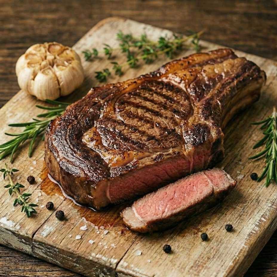 Perfect for two good appetites or spred with additions to the BBQ. Good balance of intr-muscular fat. Well prepared, no trim needed. Seasoned overnight, 3 hours at room temp., then BBQ and smoke slow ‘n sear to 52c. Rest 15mns. Came out the rare side of medium rare. Perfect and very tender and tasty.