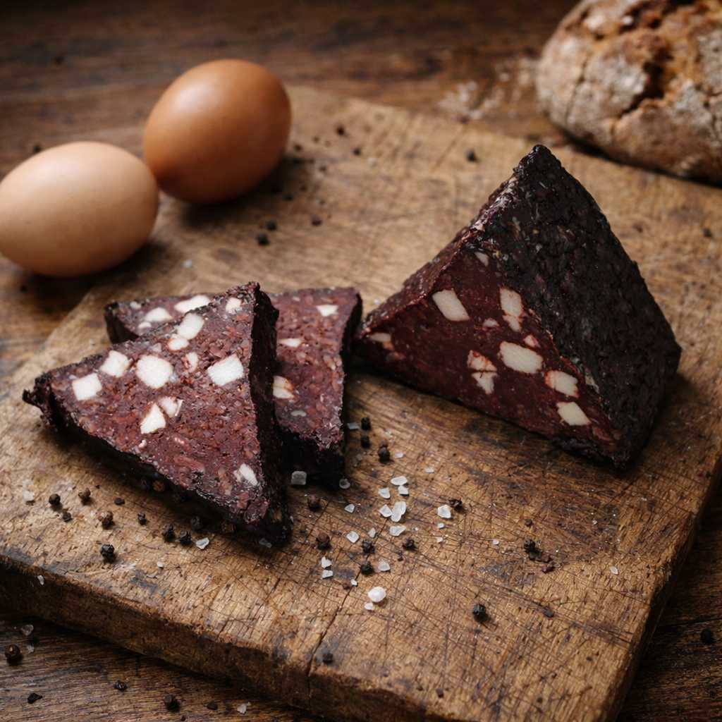 Holds together when cooking, tastes amazing. Best black pudding ever
