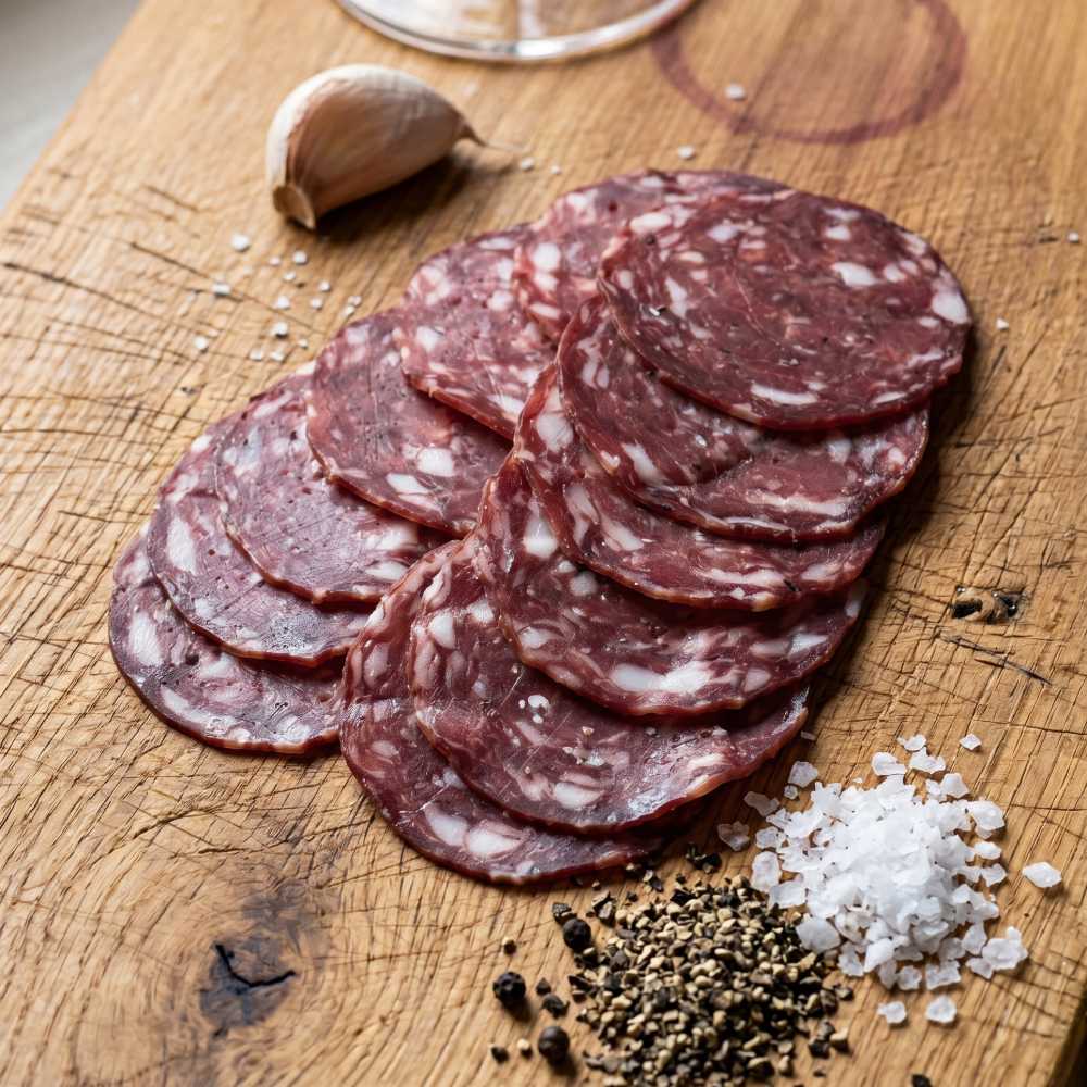 This is the sort of salami that works just as well for relaxed weekend lunches as it does for entertaining. Slice it thinly and serve it with good cheese, pickles, crusty bread, and a glass of red wine, or simply enjoy it as part of a straightforward charcuterie plate.