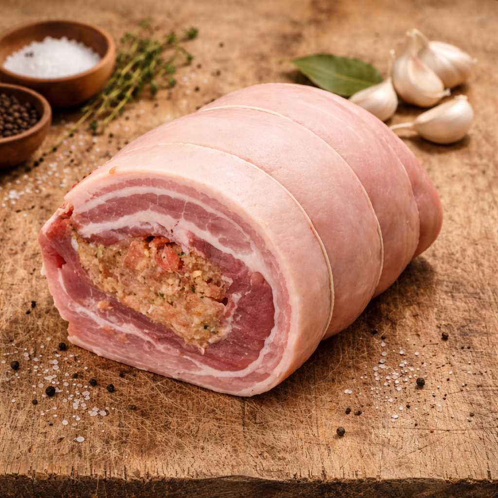 When roasted, the pork belly develops that golden, crispy crackling on the outside, while the tender, juicy meat and savoury stuffing inside create a mouth-watering centrepiece for your table. Whether for a Sunday roast, a family gathering, or a special dinner, this stuffed pork belly is sure to impress.
