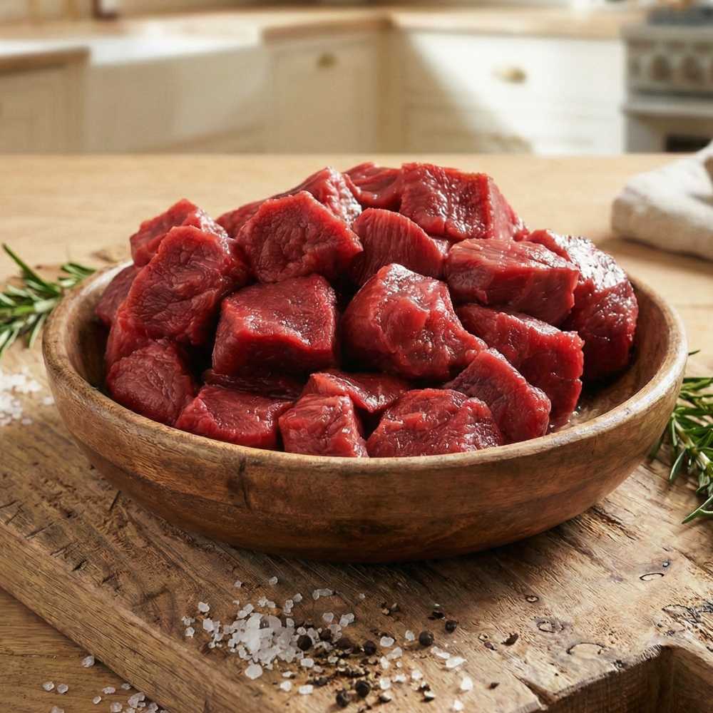 Prepared from slow-cooking cuts such as chuck and blade, our diced braising steak is full of rich flavour and natural marbling. Perfect for stews, casseroles, and pies, the meat becomes beautifully tender when cooked low and slow, releasing deep, savoury notes into every dish.